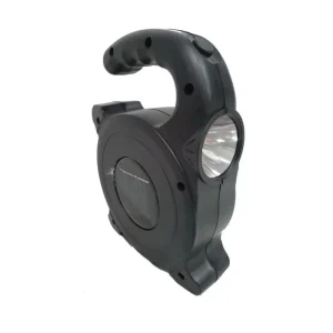 Botón de encendido independiente para la linterna. Botón con tres funciones: prende el farol del medio, el de los costados y las balizas rojas. Incluye cable USB.